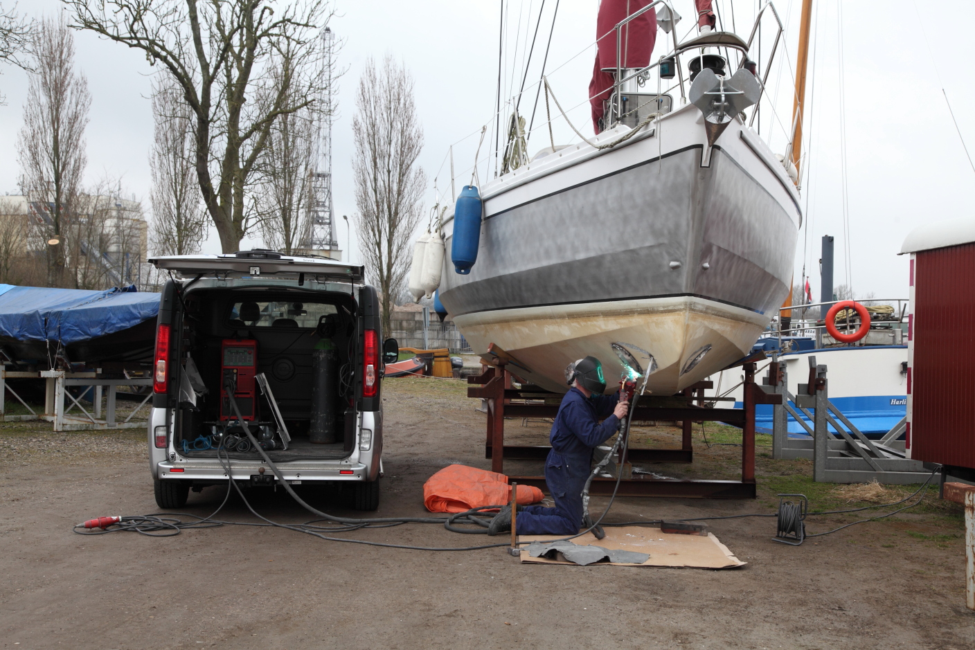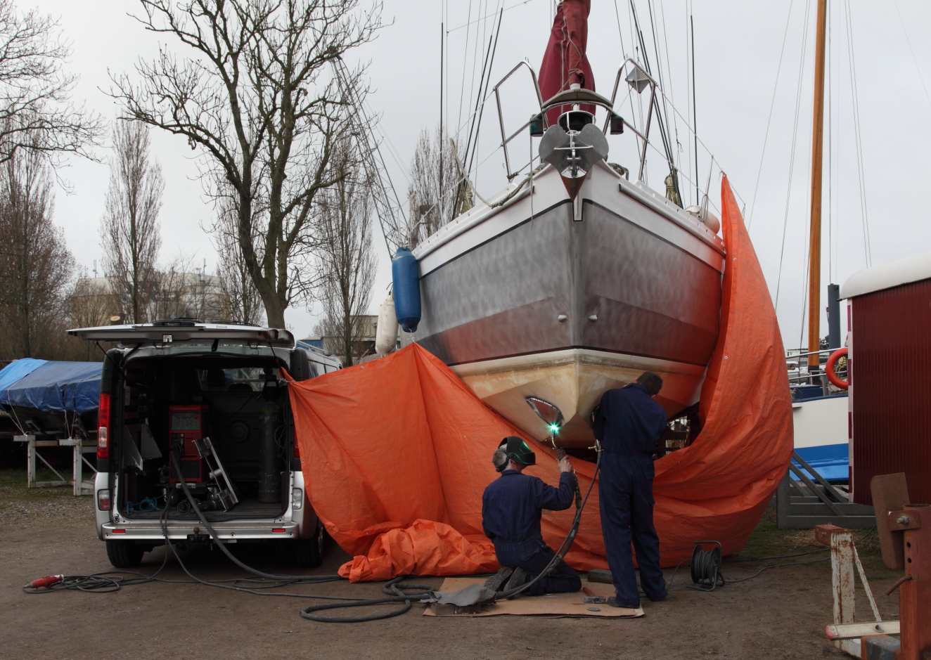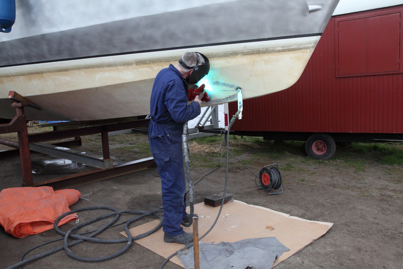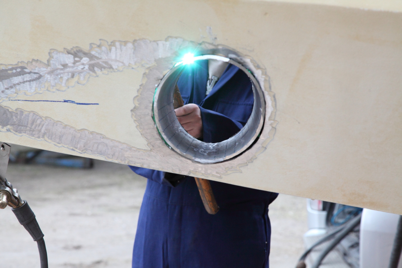 Inbouw van de boegschroef, het lassen